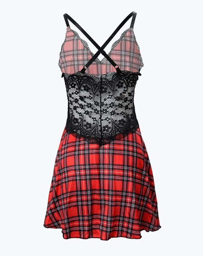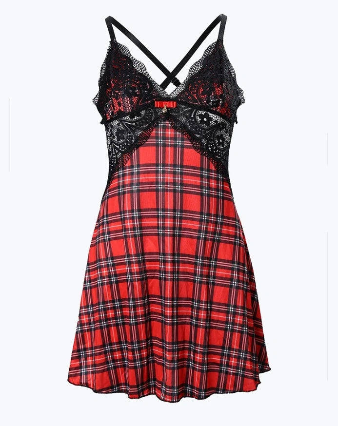 Ruuduline punk-kleit pitsilise korsetiga