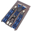 Sinised ruudulised rock-traksid mustade nahksete kinnitustega