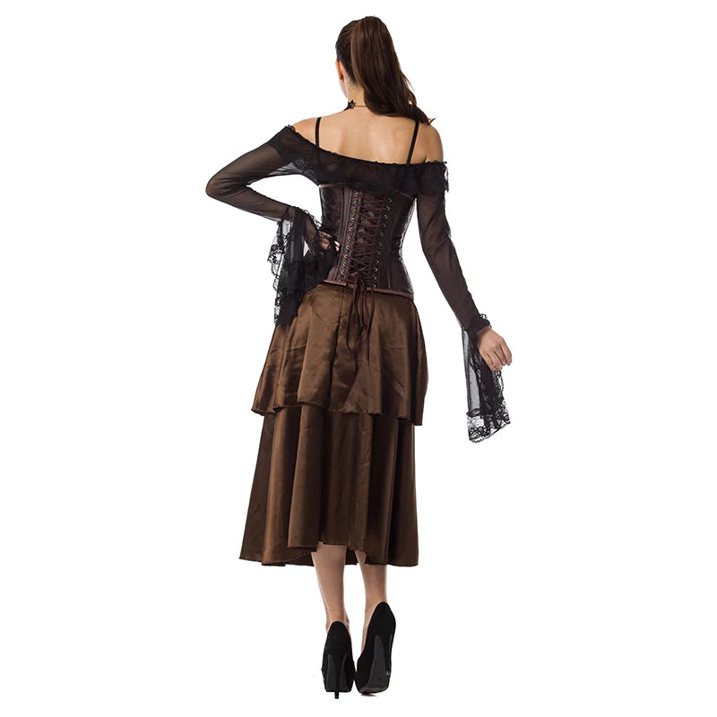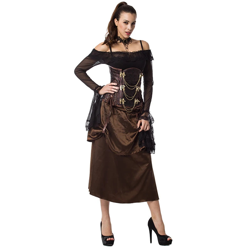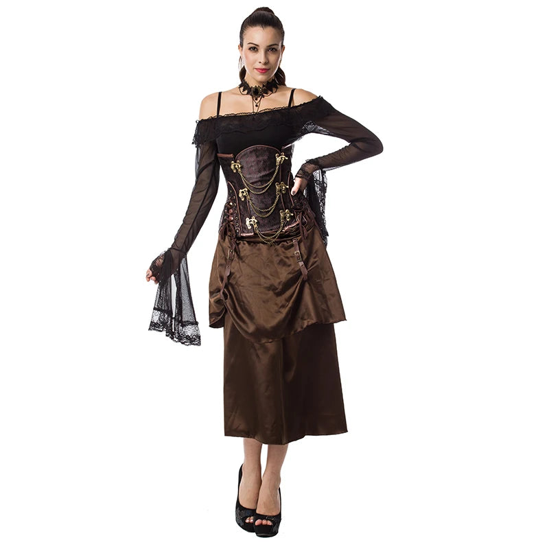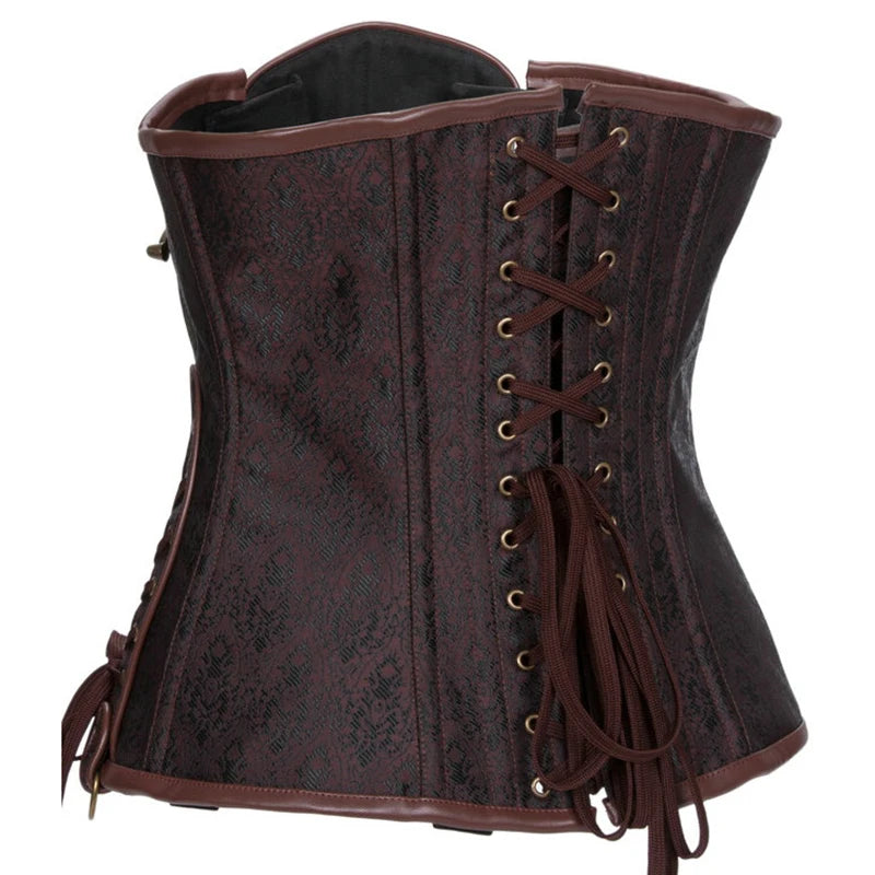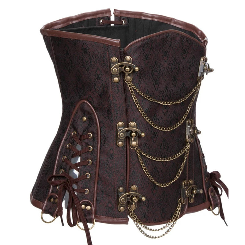 Steampunk gooti stiilis pruun korset kettide ja messingist pannaldega