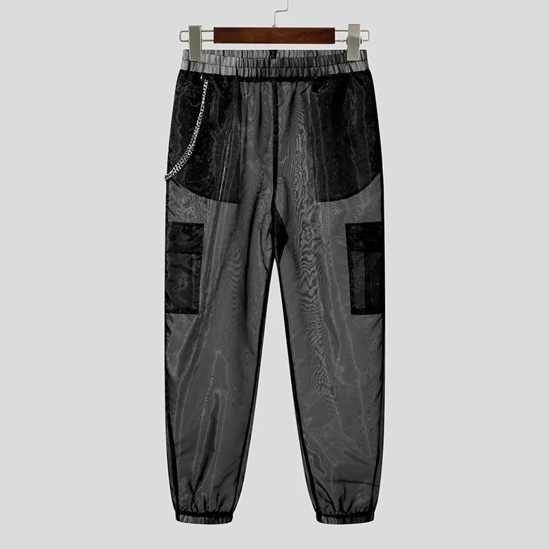 Steampunk hallid võrkkangaga cargo-püksid, linnastiil