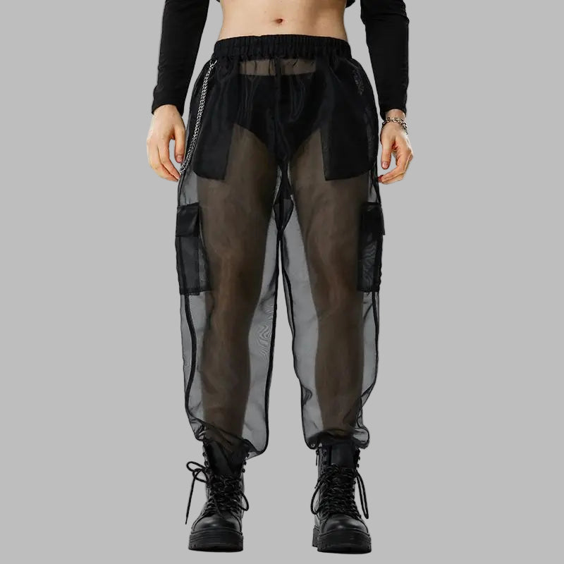 Steampunk hallid linna-stiilis võrkpaneelidega cargo-püksid