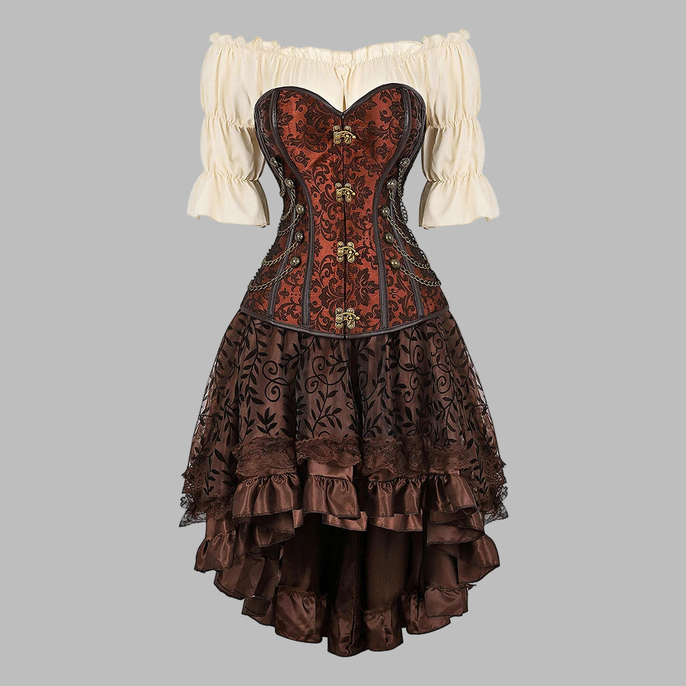 Steampunk-brokkaadkorseti ja volangseelikuga kleit
