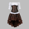 Steampunk-kleit kolmnurkse korseti, koljapeade mustriga ja valge pluusiga 6XL