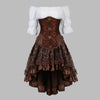 Steampunk-kleit pruuni korsetiga, kuldsete pannalde ja pitsiga 6XL