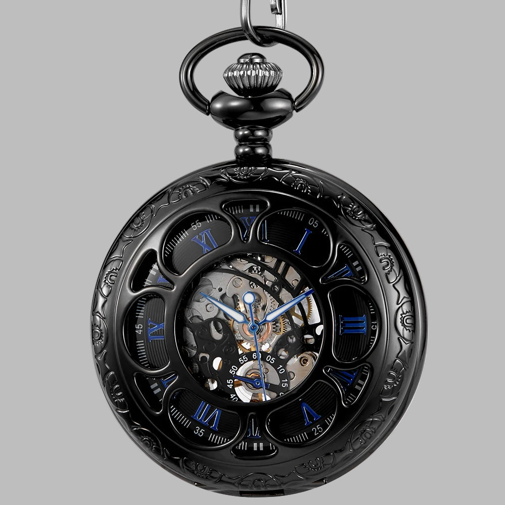 Steampunk must mehhaaniline taskukell mustade ja siniste detailidega