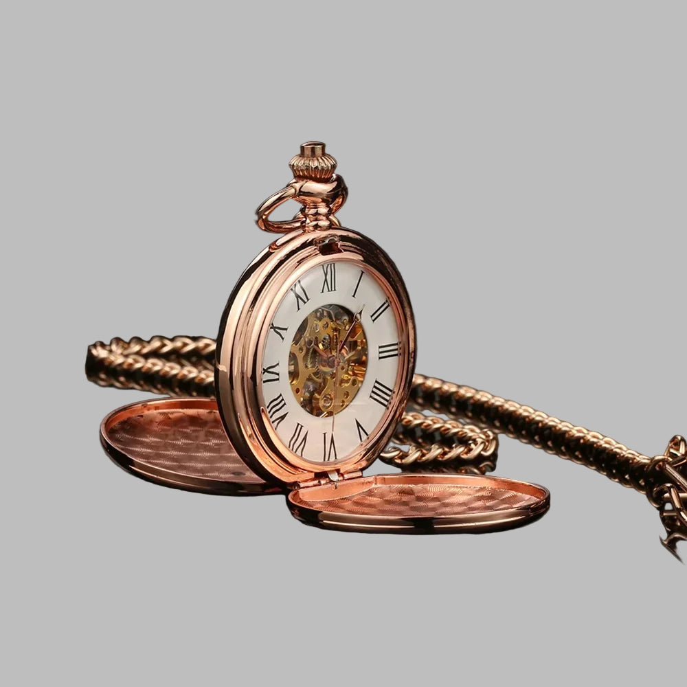 Steampunk roosa kulla skeletimehhanismiga taskukell