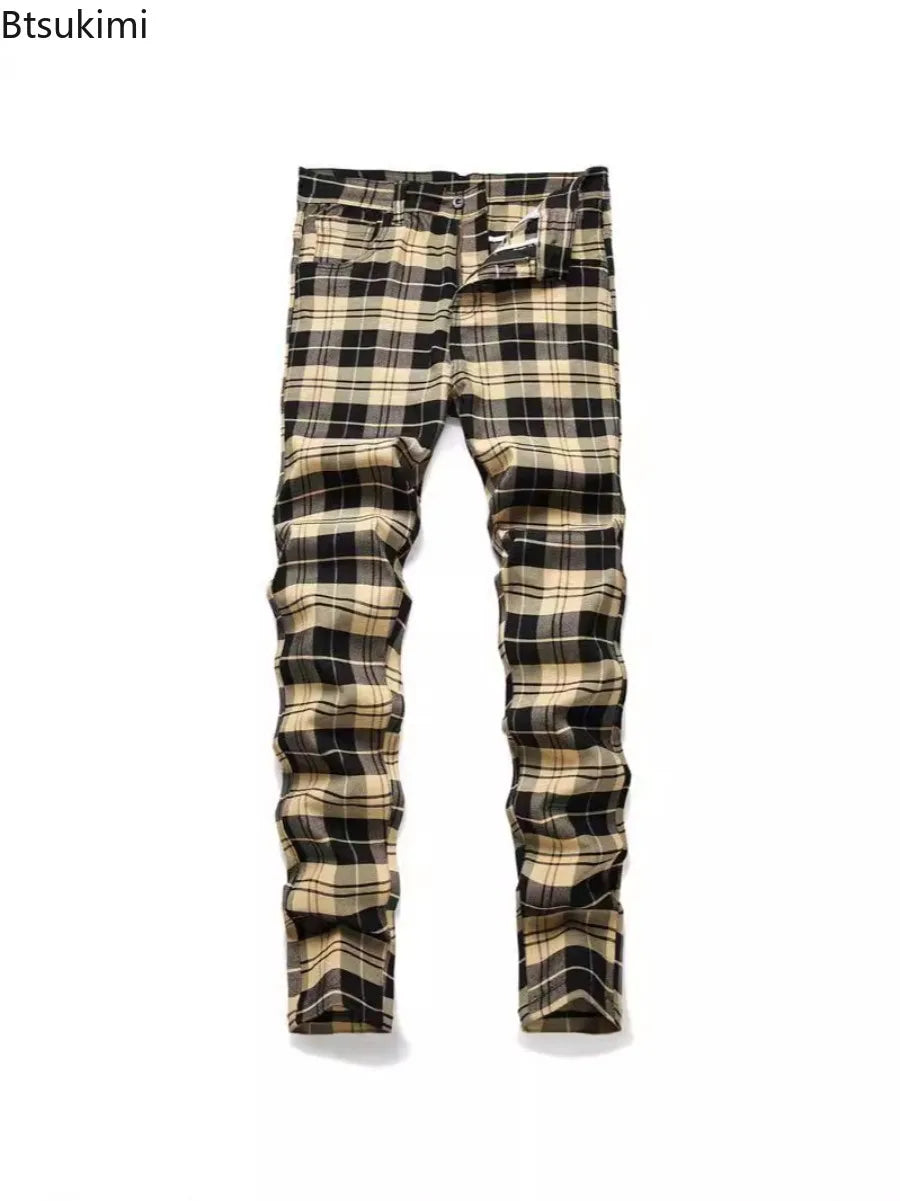 Steampunk ruudulised beež-mustad grunge-püksid