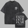 Ülegabariitne grunge-rock T-särk ristiga ja kirjaga "Faith Over Fear"