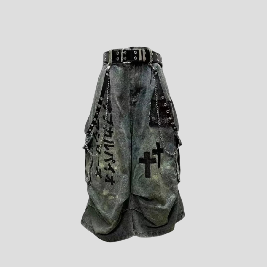 Ülegabariitsed hallid gooti püksid ristide, kettide ja vöödega