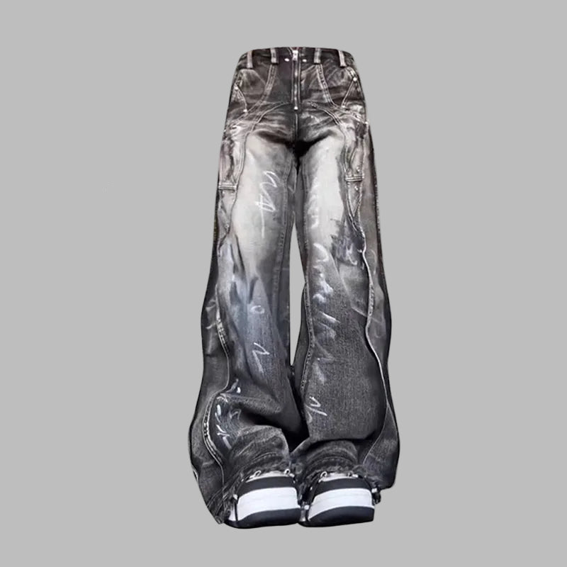 Ülisuurte mustade grunge-trükistega laiad unisex teksapüksid