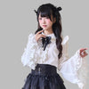 Valge Jirai Kei Lolita gooti pluus musta pitsi ja lipsuga