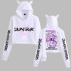 Valge Jirai Kei lühike HUNTRX Demon Hunters kapuutsiga pusa sarvedega
