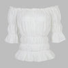 Valge lühikeste varrukatega off-shoulder piraadiplus```