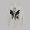 Valge kapuutsiga lukuga metallisti pusa luutiibade motiiviga