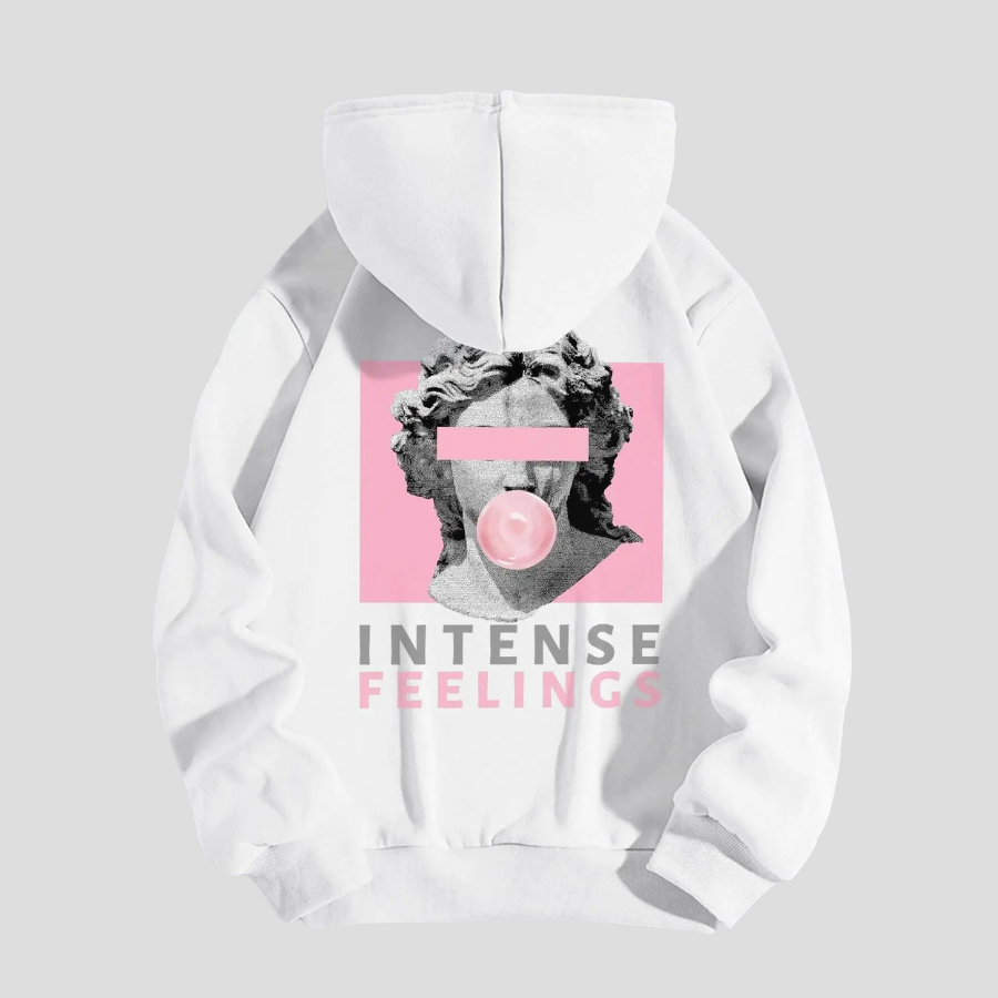 Valge popkunsti džemper roosa Intense Feelings graafikaga