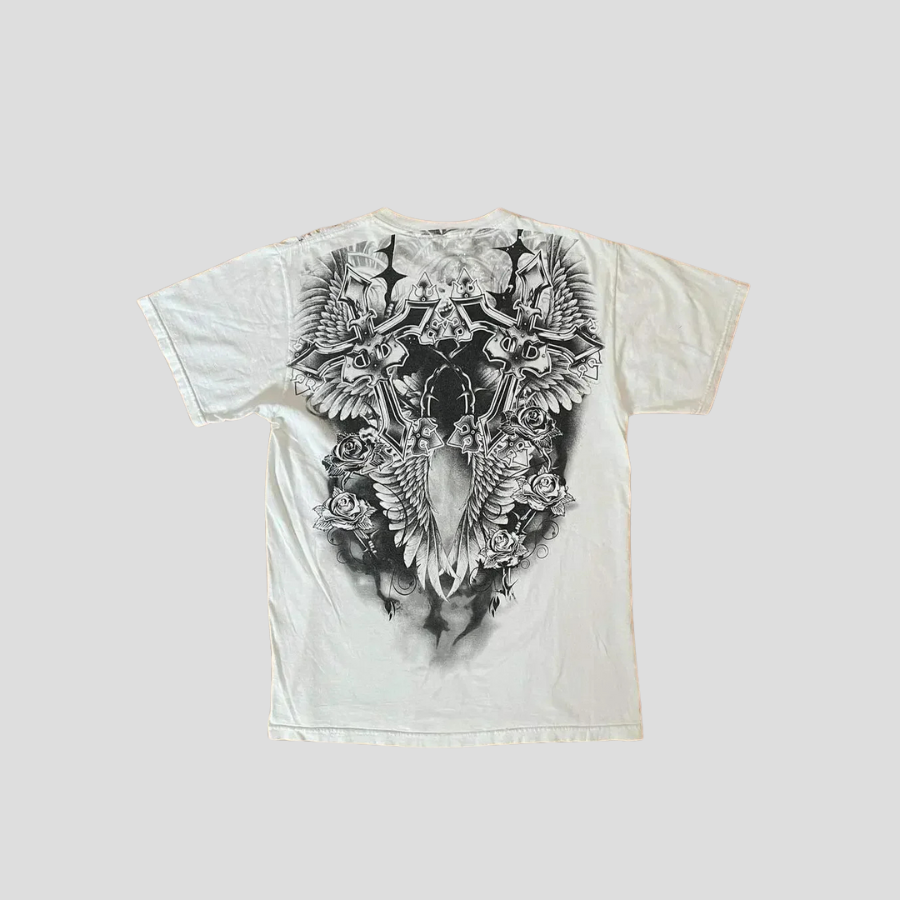 Valge rock T-särk tiibade ja roosidega Vaata valikuid