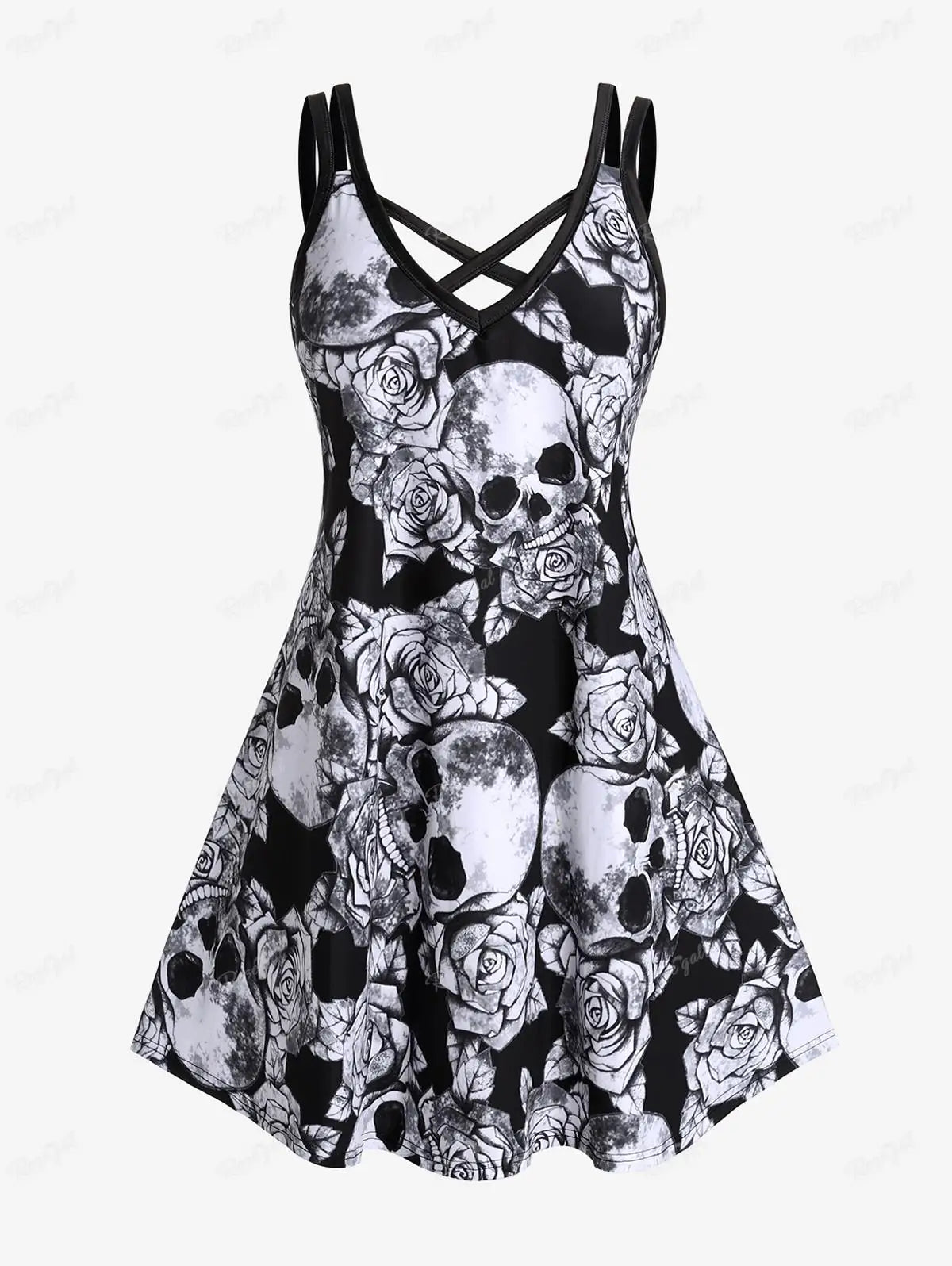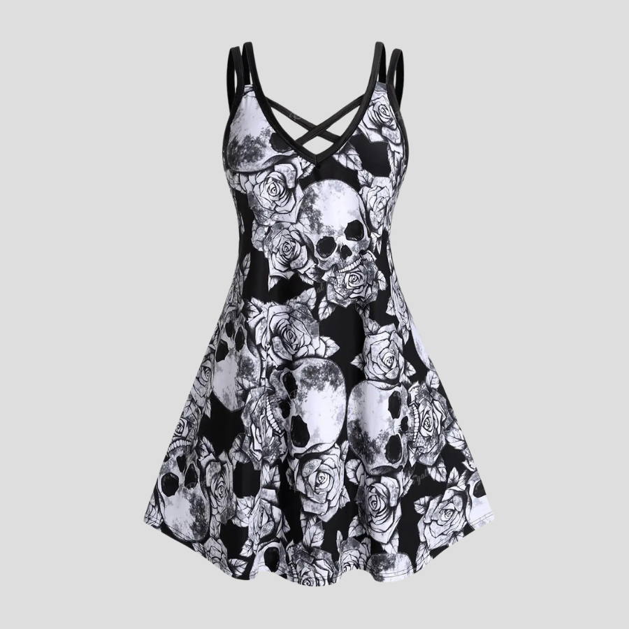 Valge rokk-kleit koljude ja metallist roosidega Vaata valikuid